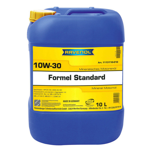 RAVENOL Formel Standard SAE 10W-30 – минеральное моторное масло, изготовленное для легковых бензиновых и дизельных моторов с и без турбонаддува и коммерческого автотранспорта.